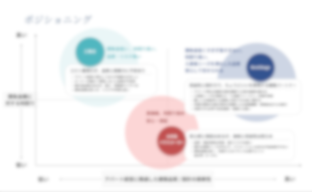 ポジショニングマップを整理するためには、業界の構造、クライアントのビジネスの強み、競合他社の状況など、さまざまな情報を突き合わせて思考するプロセスが必要です。