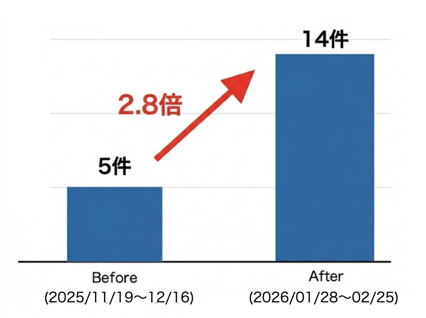 実際に以下のクライアントは、AI検索対応を進めた結果、AI検索経由での月間問い合わせ数が5件から14件に倍増しました。