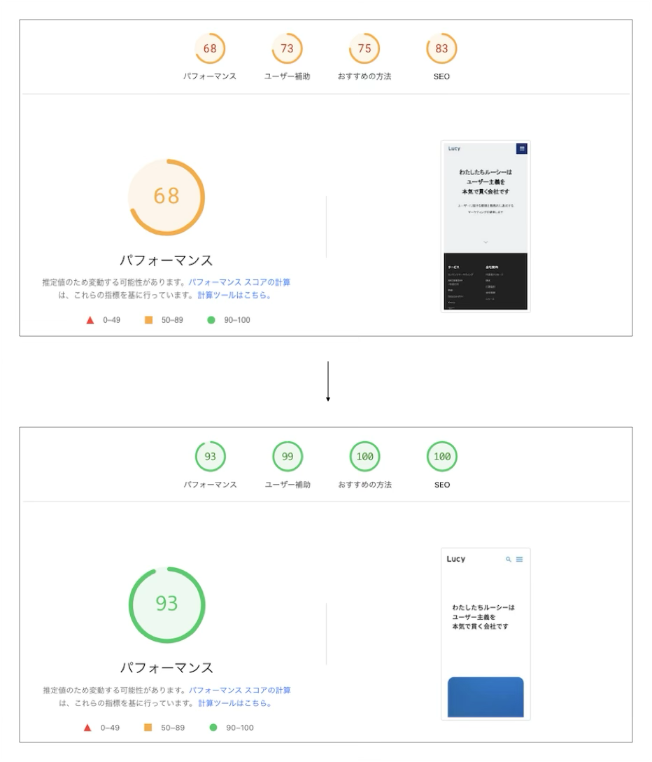 実際に弊社のサイトをWordPressからPayload CMSに乗り換えたところ、PageSpeed Insightsの全ての項目で数字が好転しました。