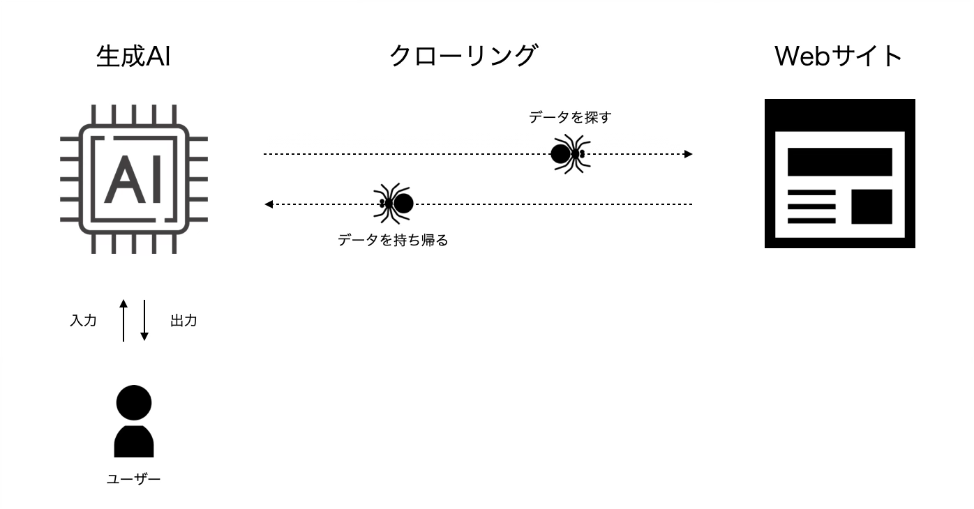 AIクローラーがあなたのサイトを認識できなければ、AI検索であなたのサイトの情報を利用することはありません。仕組みは下図の通りです。