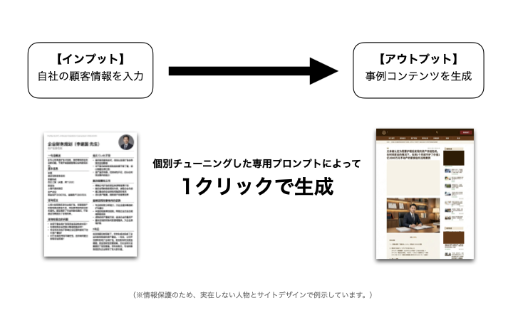 そこで、一社一社に合わせて、事例記事を自動的に作れるシステムを開発することにしました。